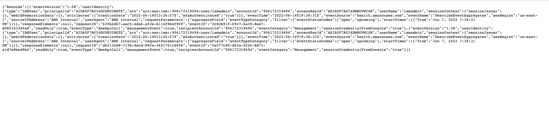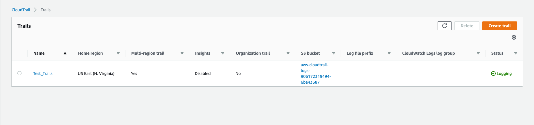 Give a few minutes for the cloud trail to collect logs on the activity done inside the AWS account.