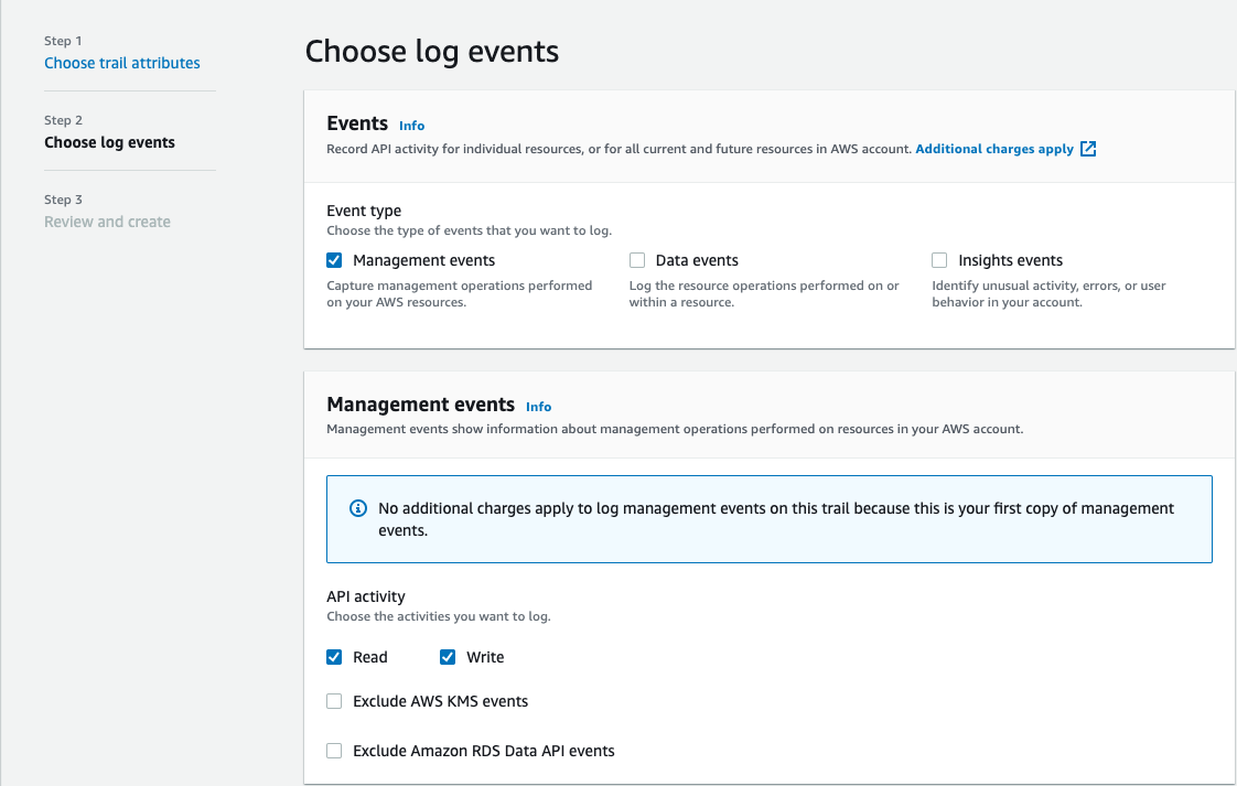 4. I have left everything as default as I only want to log Management events.
