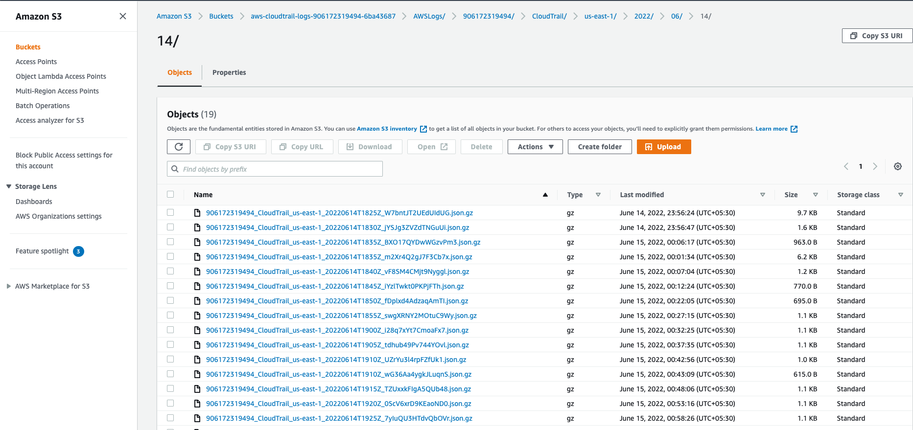 6. Click on the S3 bucket to see the cloud trail logs that are generated in the account.